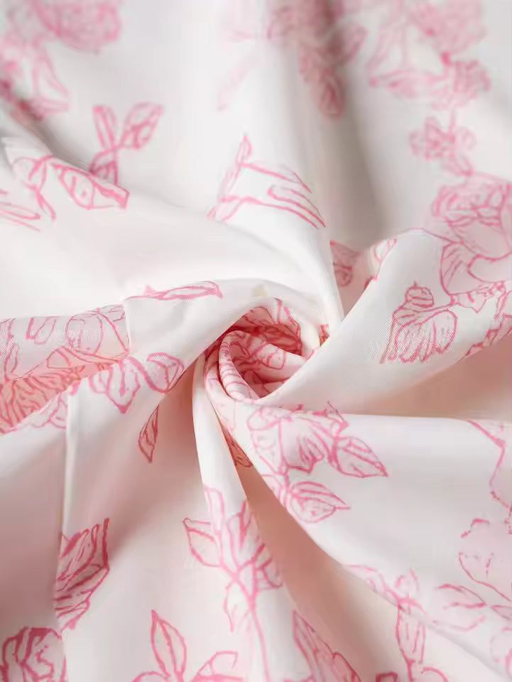 La fantasia floreale rosa dona freschezza e un tocco romantico, ideale per uno stile delicato e sofisticato.
