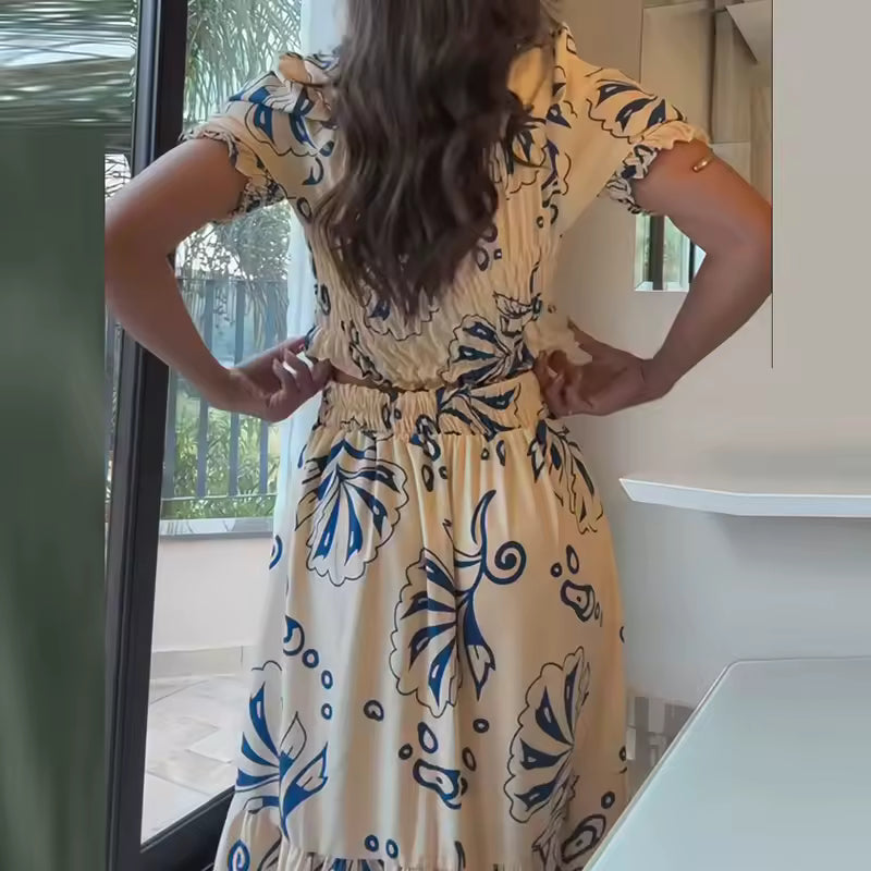 Cet ensemble deux pièces pour femme allie élégance et fraîcheur, parfait pour la saison estivale 2025.